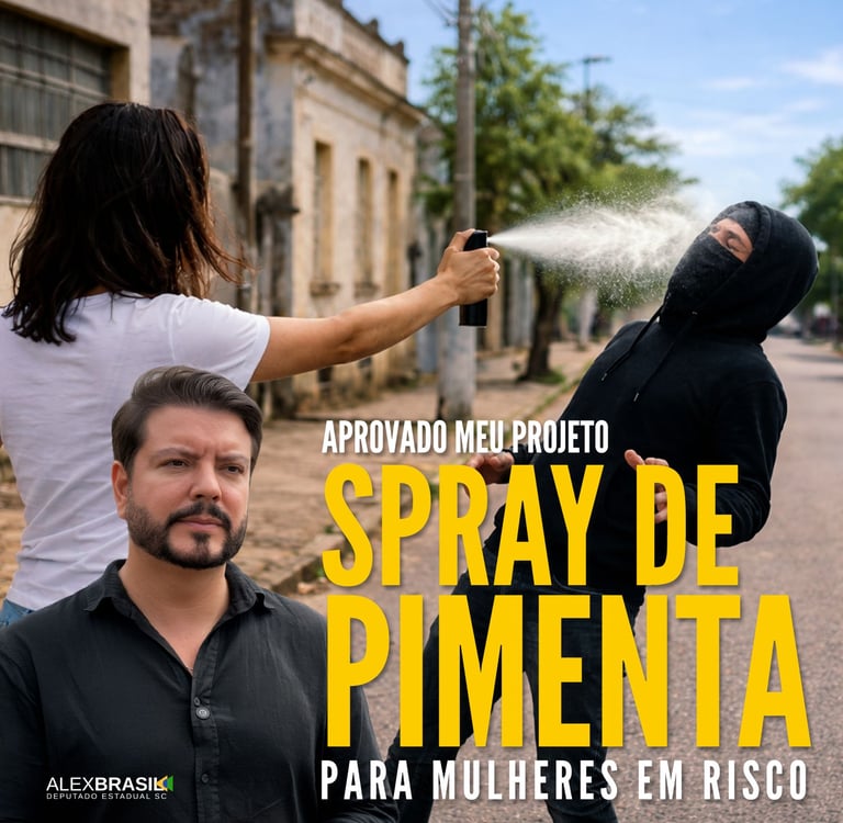 O projeto do deputado Alex Brasil, que prevê a distribuição gratuita de spray de defesa pessoal para mulheres em situação de risco, foi aprovado hoje, por unanimidade, no plenário da Assembleia Legislativa de Santa Catarina, durante a edição da Assembleia Itinerante, em homenagem ao mês da mulher.